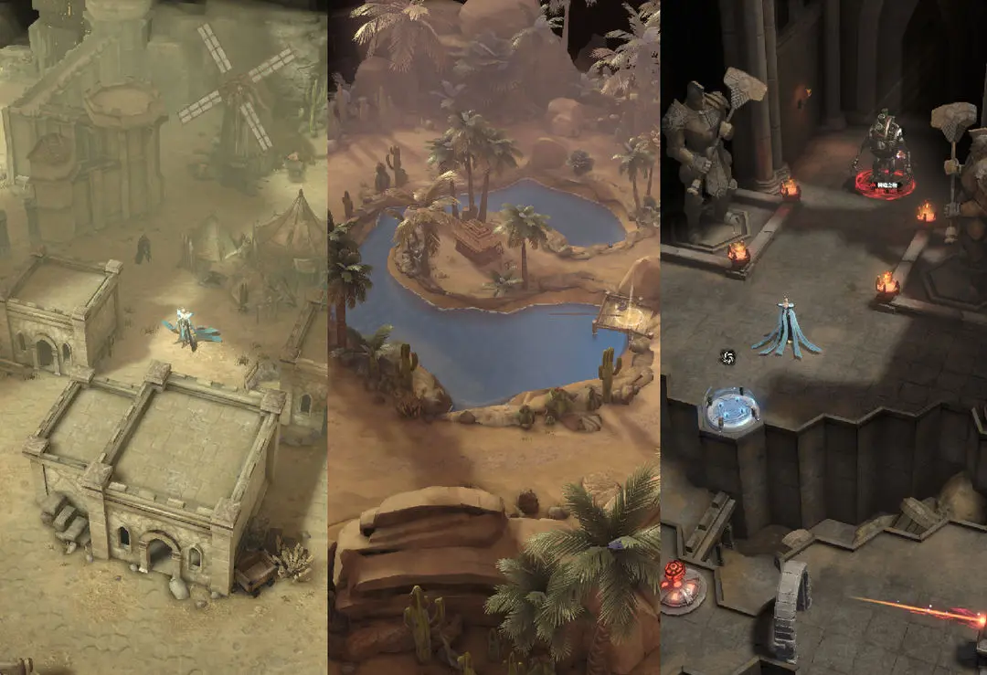 在「铸石之地」的滚滚黄沙之间,堡主们的征程就此展开。这片灼热的荒原并非死寂之地——你们将穿越建造于石谷中的城镇“火石坞”,在摇曳着棕榈的沙漠绿洲中稍作休整,并最终抵达磐石之神楚罗赫的神殿。