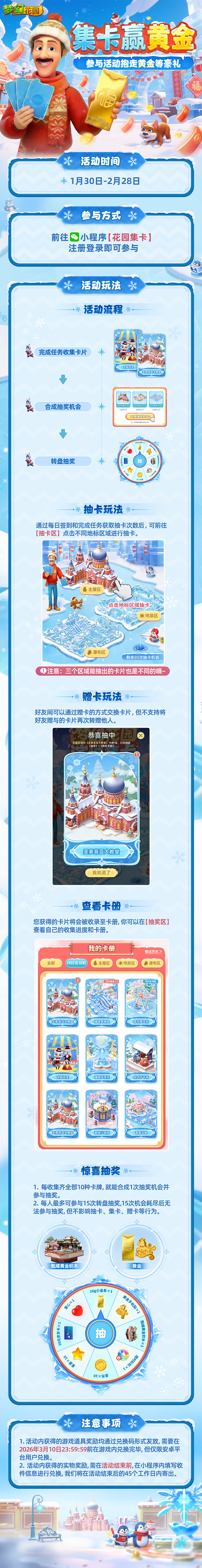 【花园集卡活动说明】参与抽黄金!滨城集卡活动开启