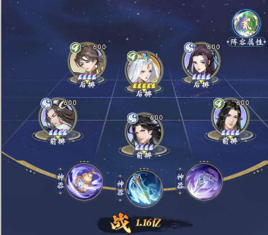应龙作为阵容唯一的肉盾,放在前排抗伤害,避免己方输出被敌方针对,提供站场能力。