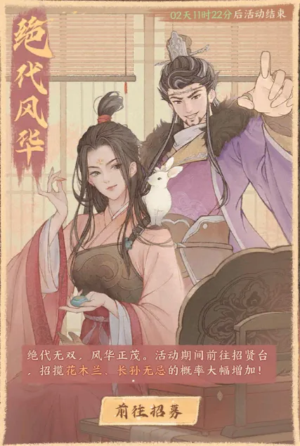 全新赛季「盛唐东征」即将启程,全新【史话招贤】卡池——【吉运】同步开启,活动期间,选择您的吉运绝代僚属!招贤概率大幅提升!