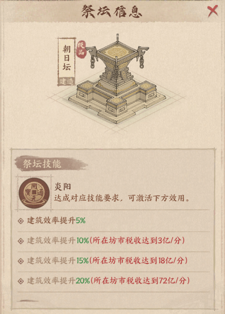 祭坛最高可以增加50%的建造效率,发育神器且性价比很高。有需求且预算充足都可以冲。