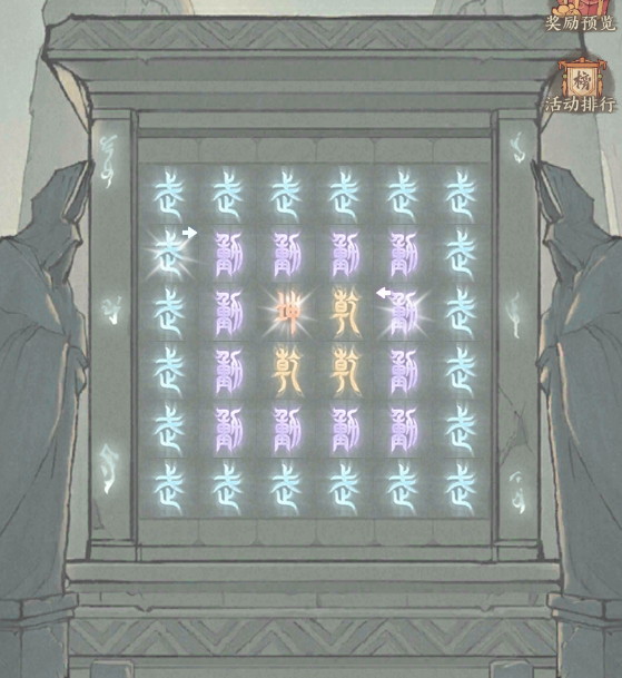 1、按固定顺序(蓝圈→紫圈→橙圈)参悟当前石碑的文字,每次参悟随机破解本圈1枚文字。