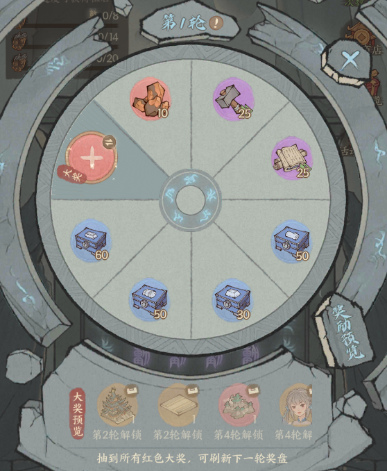 若本轮奖盘上的全部秘宝格奖励都被领取,可手动开启下一轮大荒秘典奖盘。