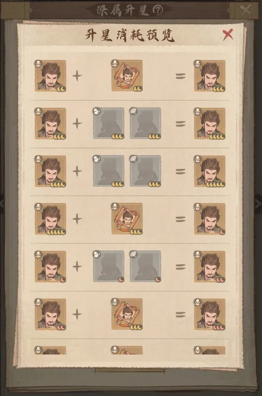 两位僚属的升星消耗较为特殊。在进行4/5/7/10/12/14升星时,需要同时使用两种势力的僚属作为升星材料。房玄龄为侠士+名士,何秀姑为官府+宗府。