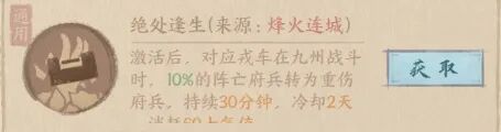 2.死亡府兵转重伤类型的戎车技能新增加成上限为25%(例:烽火连城)