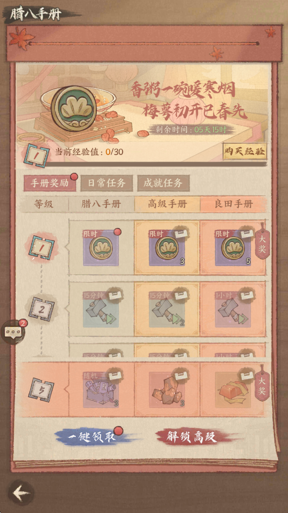 通过完成「日常任务」与「成就任务」提升手册等级,从加速道具到稀有物资,等级奖励涵盖您的所需。