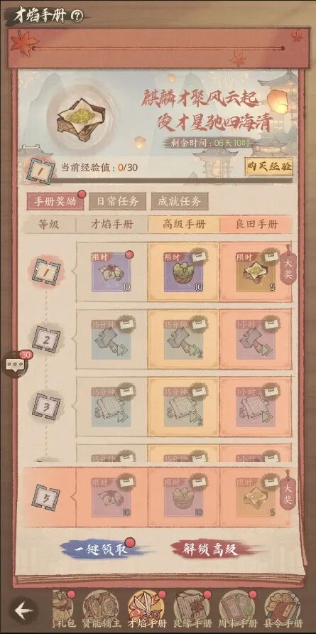 活动专属手册同步上线!完成每日任务积累经验,逐步解锁多层奖励。激活“良田手册”更可领取额外限定道具!
