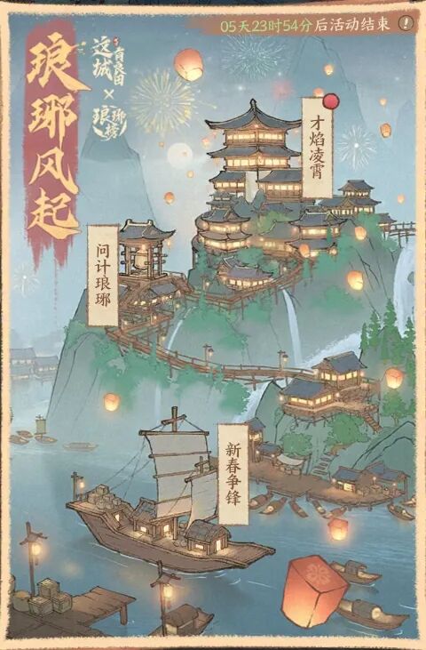 春节主题活动才焰凌霄即将开启,这城的夜晚将更加璀璨!大人们可通过游戏内相关活动获取道具,制作烟花~