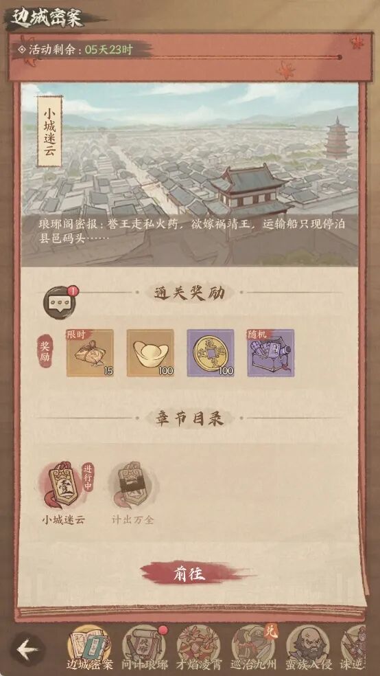 一封来自江左的神秘来信,悄然打破了县邑的宁静。边城突发离奇事件,梅长苏将与你携手组成探案搭档,在重重迷雾中抽丝剥茧,揭开真相。完成限定剧情章节,即可获得丰厚奖励。