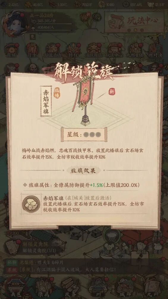 上元灯映长安夜,火树银花照山河!新春限定领域【不夜长安】即将上线。领域以长安盛景为背景,亭台楼阁错落,灯火璀璨。激活后不仅获得属性飞跃,更能在你的县邑营造“火树银花合,星桥铁锁开”的永久新春氛围!