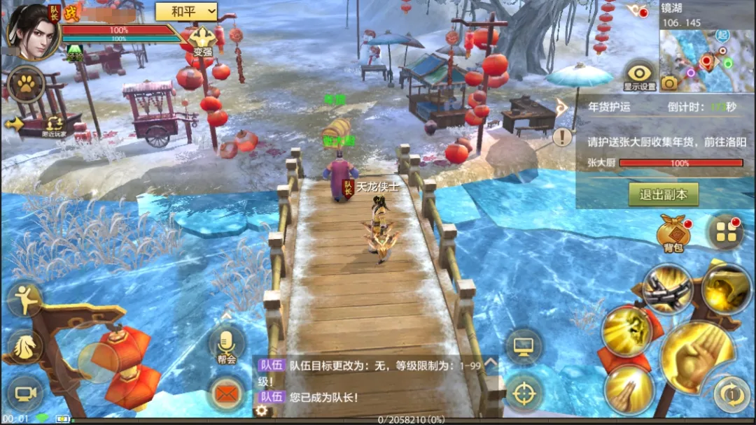 新年将近,家家户户都备起了年货。咱们天龙的张大厨也准备了充足的年货准备过年,岂料运输途中居然被恶人盯上,要抢走满满当当的年货,少侠快去结伴帮助张大厨脱困并保护年货吧。
