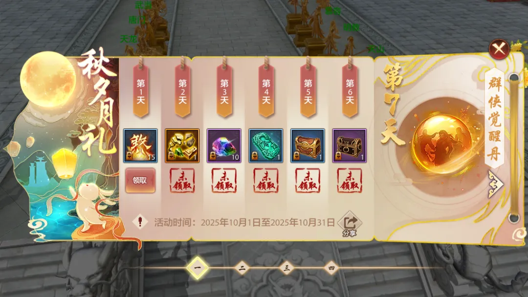 秋风送爽,十月福利加码!江湖已备好满满惊喜,只待少侠前来解锁。记得定好闹钟,每日上线打卡拿好礼,再顺手将本篇内容转发给兄弟姐妹,福利消息不能落后!这个十月,我们江湖不见不散~