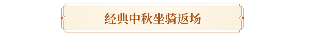 光有时装还不够,乘月的坐骑当然也少不了。本次返场的三款经典坐骑是大家熟悉的秋水月轮、皎月思卿和玉兔倚桂,每一款都颇为风雅,足以让少侠成为江湖中秋夜的一抹亮色。