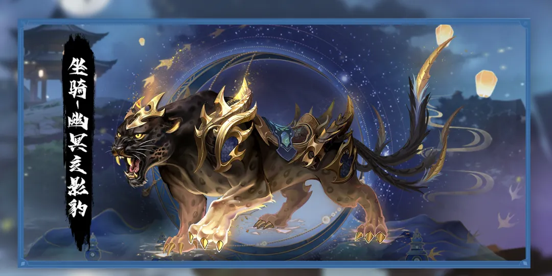 金瞳如熔金淬火,獠牙泛着寒芒,这款幽冥玄影豹既有铠甲加持的庄严感,又兼具与生俱来的优雅灵动,妥妥是江湖侠士最衬身份的 “霸气坐骑”,出场便足以震慑四方。