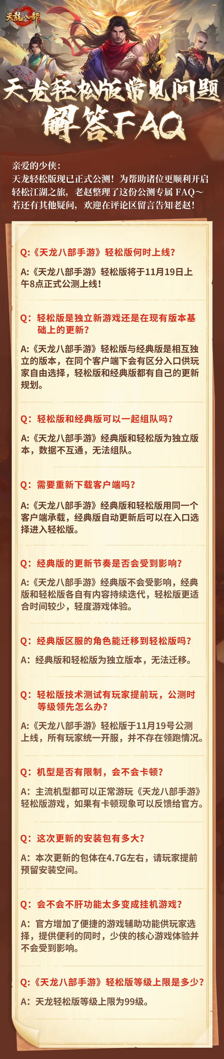 盼望着,盼望着,天龙轻松版终于正式公测啦!在正式开启轻松江湖之旅前,相信少侠们心中还有许多疑问:
