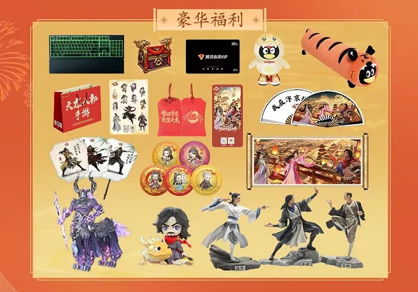 限定周边轮番上阵抽奖,紫电手办、龙吟手办等实物大奖不定时空降掉落!只需锁定直播间,便能坐等惊喜临门,足不出户也能把江湖好礼抱回家,共享这场江湖盛会。
