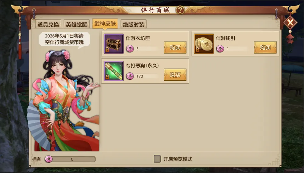伴行商城同步开启,神器幻化「专打恶狗」等道具也将限时上架。