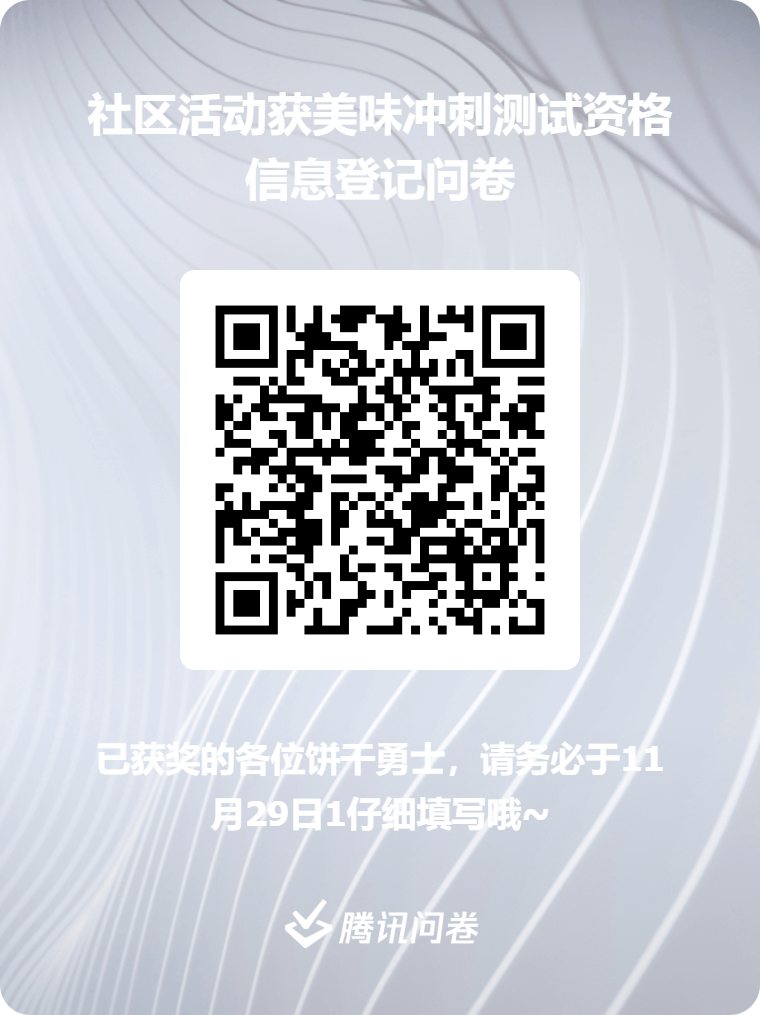 美味探索奖3人,每人送出腾讯视频月卡一份+终测资格;