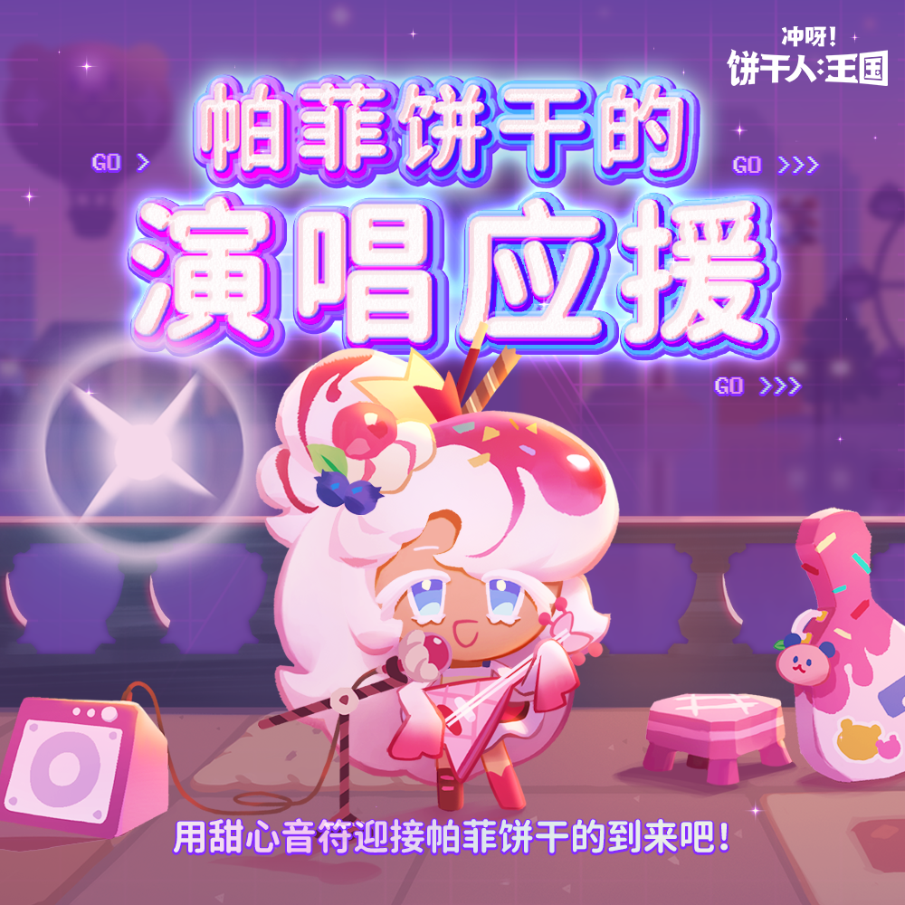 帕菲饼干的演唱应援:使用帕菲TV活动中获取的「甜心音符」,收获帕菲饼干的演唱应援奖励吧~每一场次的演唱都可抽取不同的道具,抽取到「VIP通道券」后即可开启下一场次的演唱,并获取不同的应援奖励。累计参与必定免费获取「帕菲饼干」!