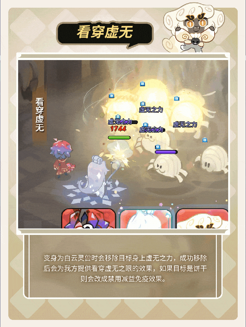 他为了幻彩面粉饼干成天守在雄伟的白面寺前,面对不请自来的外界饼干便竖起他锐利的爪子。不过只要来者对幻彩面粉饼干展现出友好的态度,他就会言行恭敬立刻并递上热腾腾的白包子,是个冒冒失失却不失可爱的孩子。不过,上一秒还亲切指引着白面寺里复杂路线的他,下一刻却又忽然消失在迷雾之中...这到底只是个玩笑,还是他别有居心呢?