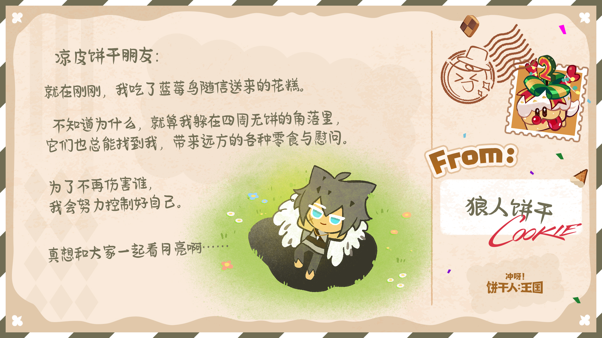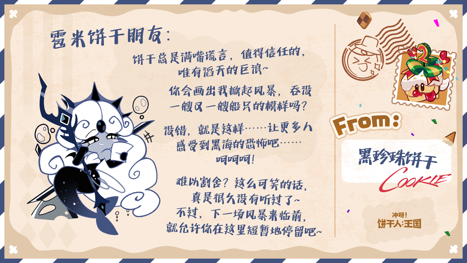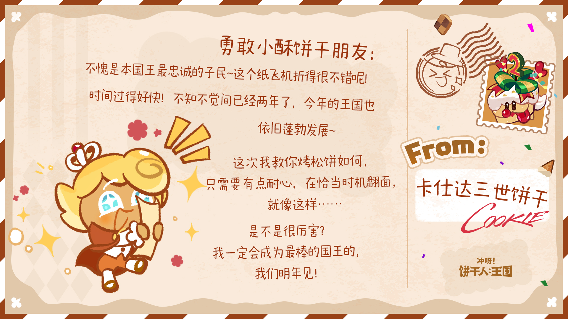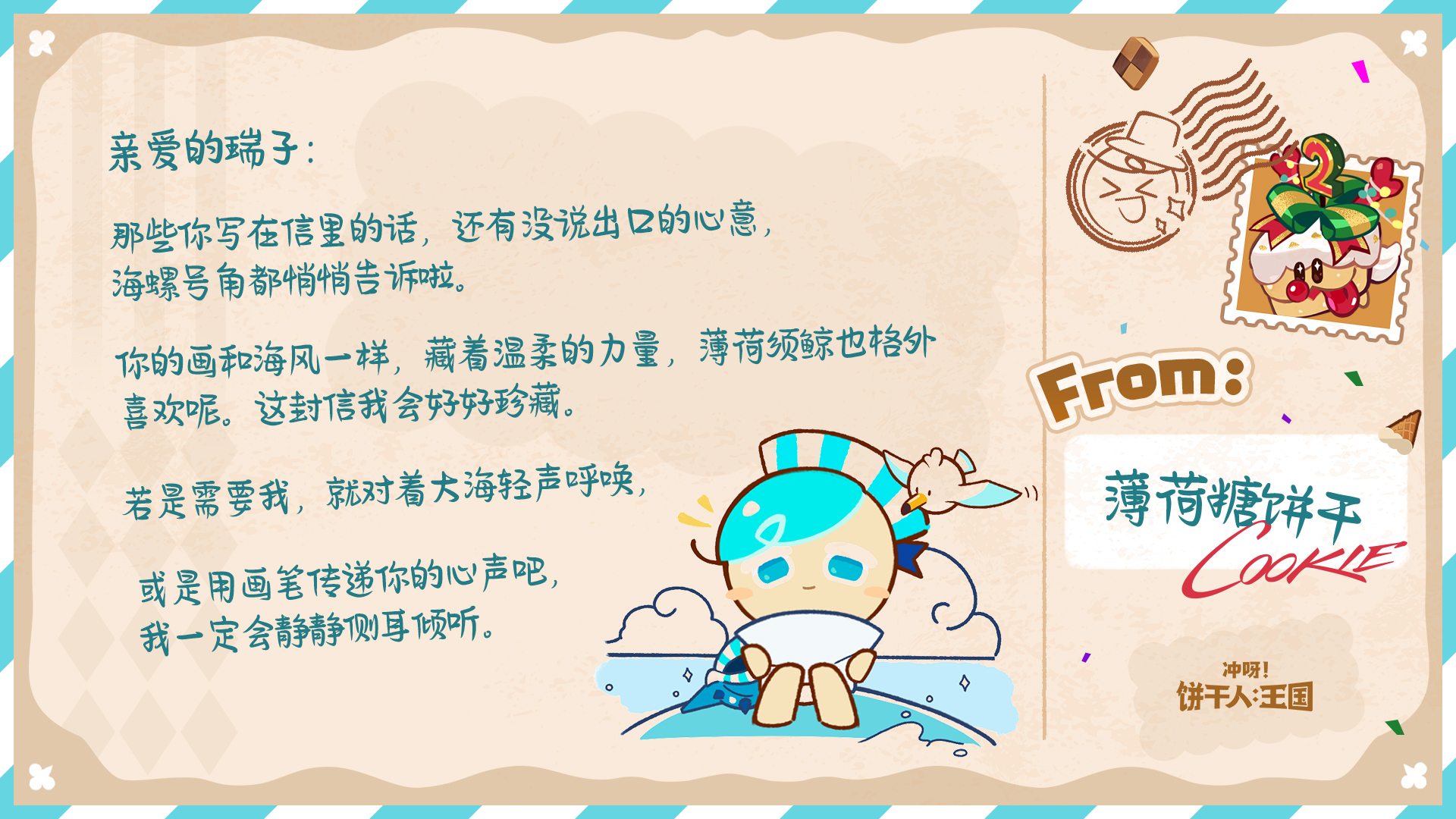 除了参与游戏内热气球有机会收获回信外,今年的饼干们也有随机抽取来信的饼干朋友,并给大家回信哦~