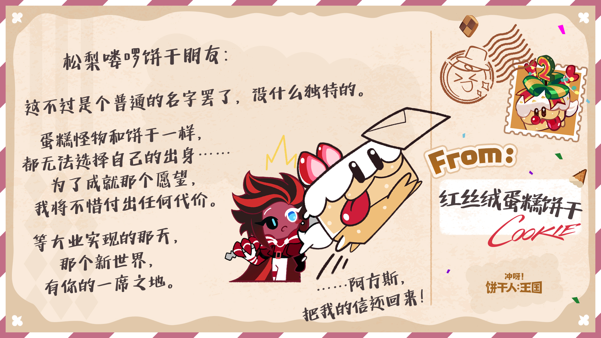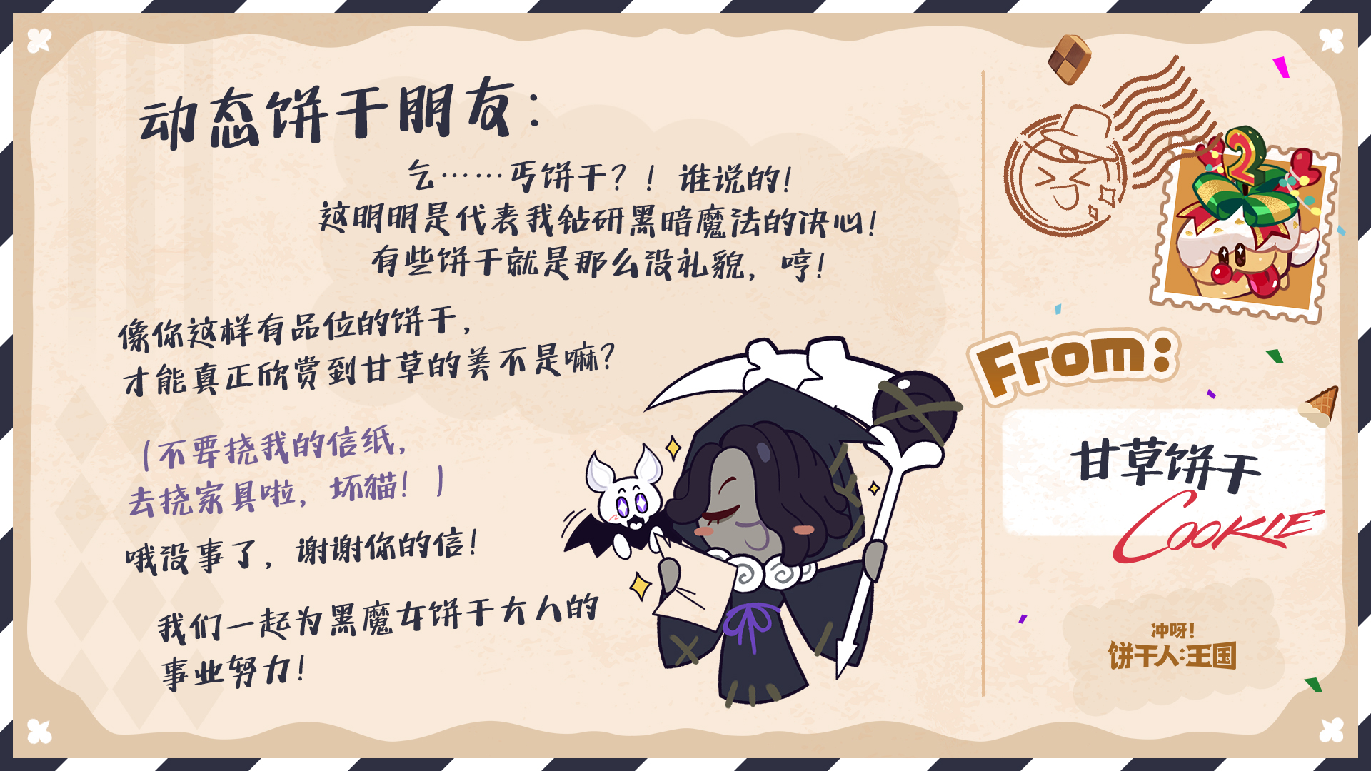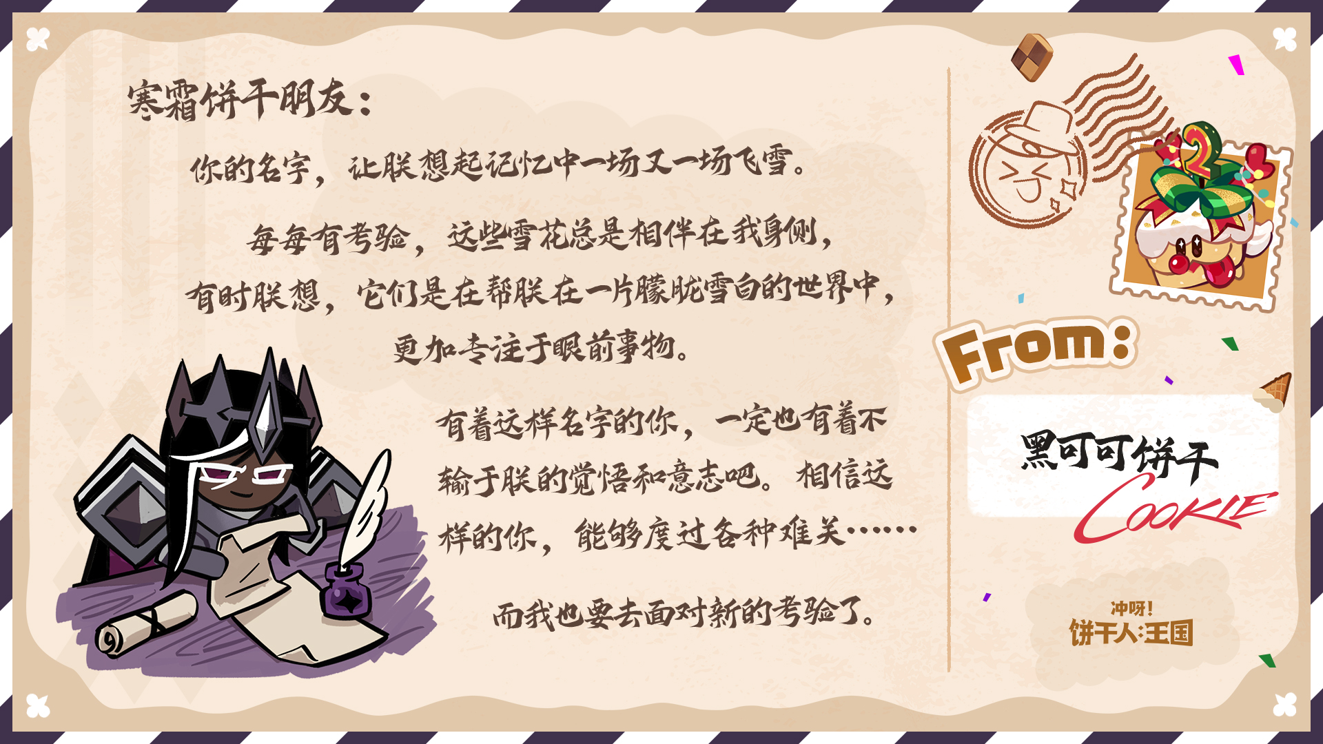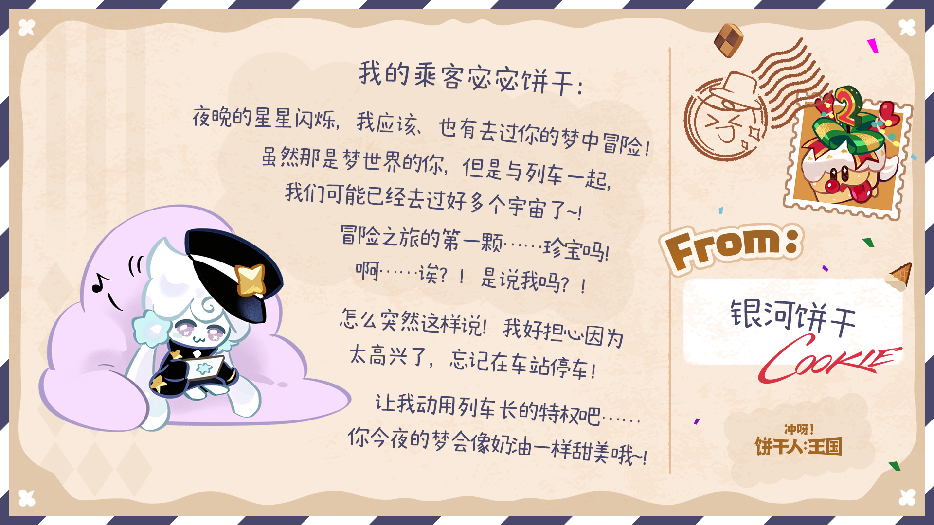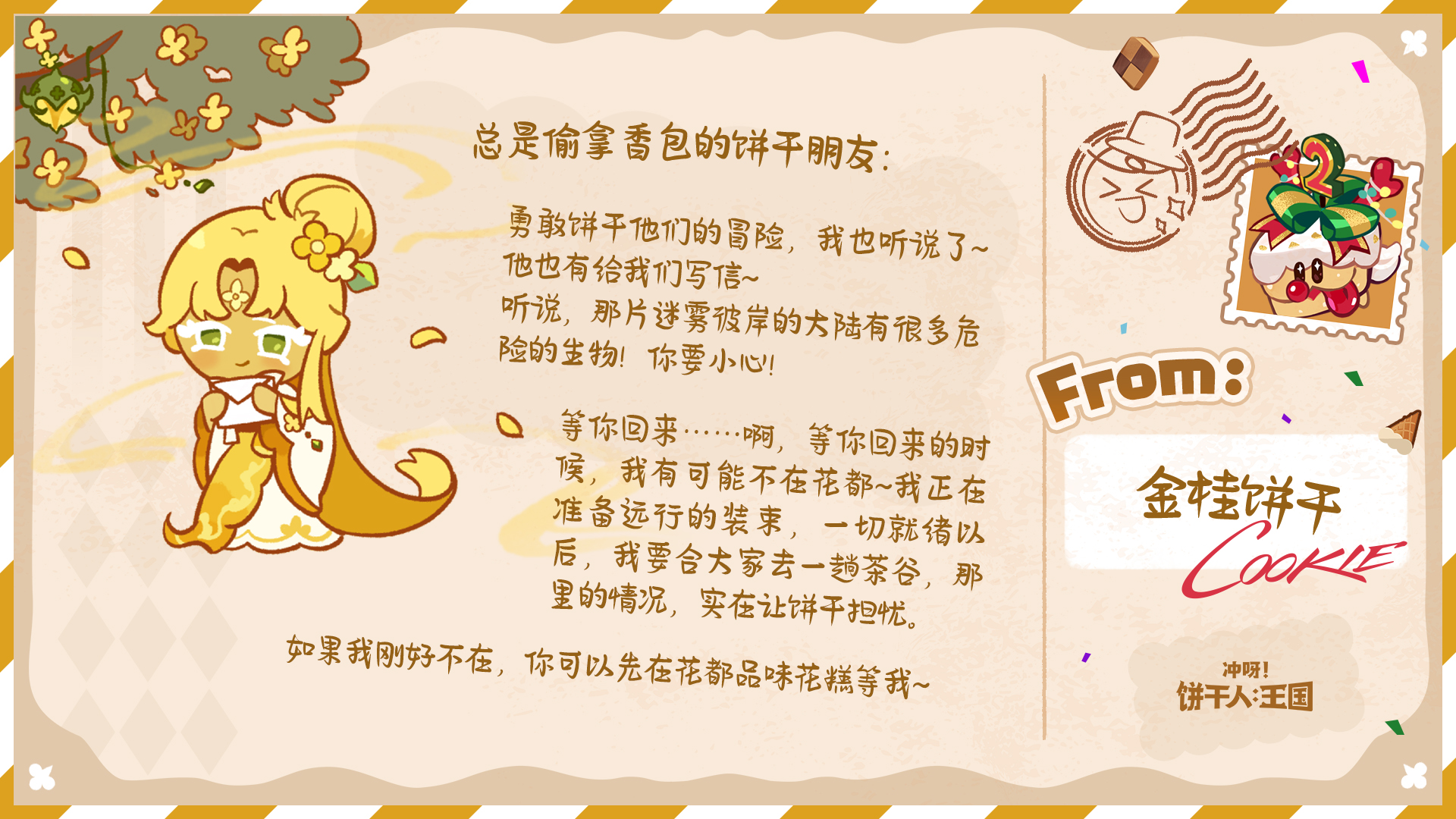 除了参与游戏内热气球有机会收获回信外,今年的饼干们也有随机抽取来信的饼干朋友,并给大家回信哦~