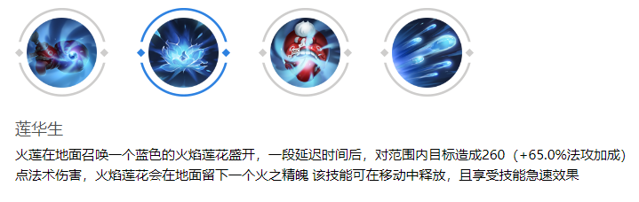 火莲召唤一个火焰莲花,对目标造成法术伤害。该技能可以在移动中释放,并且享受技能急速效果。这使得火莲能够在战斗中灵活调整位置,同时保持高频次的输出。作为火莲的主要清线手段,同时也是远程消耗敌人的核心技能,玩家需善用移动施法特性以提高命中率。
