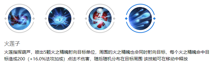 火莲释放5颗火之精魄射向目标单位,火之精魄命中目标后,会造成高额的法术伤害。这一技能是火莲的核心输出手段,尤其在针对单个目标时,能够造成毁灭性的打击。释放时需精准预判敌方走位,并配合被动或二技能创造的火之精魄环境,以最大化伤害输出。