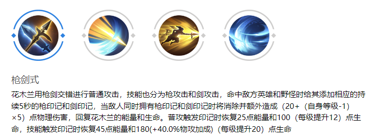枪剑式:花木兰通过巧妙地交替使用枪与剑进行普通攻击,使她的技能也相应地分为枪攻击与剑攻击。每当她击中敌方英雄或野怪时,都会分别施加枪印记与剑印记,这为她的后续攻击奠定了强大的基础。
