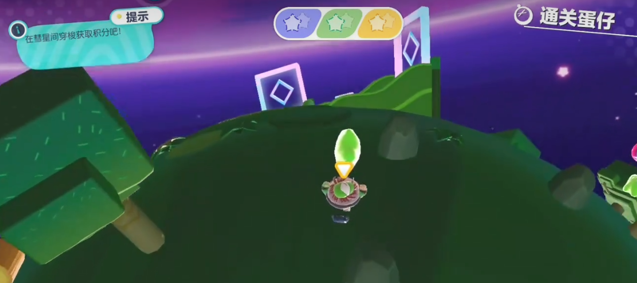 关卡地形与机关详解 黄星:宛如工业奇境,布满错综复杂的设施与电网,更有机关挡板不时阻碍玩家的行动。紫星:这里仿佛神秘的紫色梦境,遍布水晶矿与紫云,同时高速滚动的紫色滚球带来了不小的危险。绿星:则是一片生机盎然的自然之地,树木、石头与栅栏相互交错,旋转的大锤与飘浮的云朵为挑战增添变数。道具方面,关卡内虽无主动道具,但却有神奇的加速球(接触后可大幅提升速度)和实用的弹射板(帮助玩家切换彗星)。