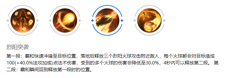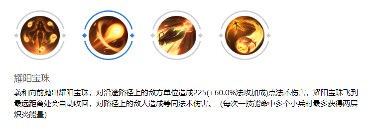羲和的被动技能“炽炎环绕”对于他的输出和生存至关重要。攻击叠层会转化为炽炎火球,对敌人造成范围法术伤害,这不仅提高了他的清线效率,还增强了消耗能力;受击触发的减伤护盾,则为他提供了宝贵的抗爆发保护,使他在面对敌方法术爆发时更加坚韧。一技能“耀阳宝珠”是羲和的主要清线和消耗手段,宝珠沿直线投射后会自动折返,造成双段穿透伤害,既能迅速清理兵线,又能在安全距离外对敌方英雄进行血量压制。
