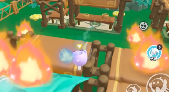火焰集市的设计独具匠心,玩家们初始位于关卡中央的圆形高台,放眼四周,一片繁华的集市景象尽收眼底。左侧是宁静怡人的喷泉区,右侧则是一片繁忙的伐木场,身后则是一片郁郁葱葱的森林,森林深处还蜿蜒着一条清澈的小河。在这片独特的地图上,玩家们需要通过投掷水球来熄灭随机出现的火焰,每次成功扑灭火焰,便可获得宝贵的1分,最先累积达到12分的蛋仔将荣耀通关。火焰集市不仅考验玩家的反应速度,更考验策略与规划。关卡地形虽平坦,但部分房顶可通过蹦床或踩踏木桶巧妙登上,森林中的小河则为水球提供了源源不断的补给。场上分布着补充水源的水池,一旦接触,即可瞬间补满8颗水球。水球作为关卡中唯一的道具,其重要性不言而喻。而关卡中的机关设置更是增添了游戏的趣味性与挑战性。火焰一旦被触碰,可瞬间为玩家提供加速效果,但同时也会减缓转向速度。集市的部分房屋附近巧妙放置了蹦床,助力玩家跳得更高更远。