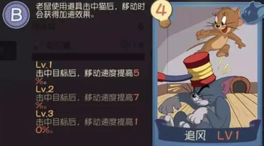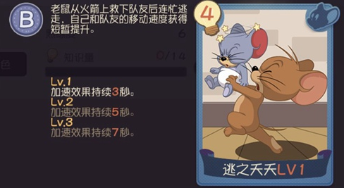 知识卡搭配推荐:核心卡组方面,首选【逃之夭夭】,该卡在成功救援队友后,能使恶魔杰瑞获得显著的速度提升。这不仅大幅增强了救援后的生存几率,还使其能够灵活转场,摆脱险境,实为其必备的神级卡片。其次是【飞跃】,它能全方位提升跳跃性能,无论是在高度、距离还是速度上,都让恶魔杰瑞如虎添翼。在面对复杂地形时,他能够轻松跨越,无论是躲避敌人的追击,还是迅速支援队友,都显得尤为关键。再者,推荐【追风】,当使用道具命中猫咪后,速度将得到进一步提升。配合恶魔杰瑞频繁的道具干扰,这一技能能够有效放大其“溜猫”能力,确保在支援过程中更加高效。最后是【逃窜】,在被猫咪攻击后的短时间内,恶魔杰瑞的移动速度和跳跃速度都会增加。这一关键技能能在危急时刻保命,避免被敌人秒杀,为团队创造出更多的操作空间。