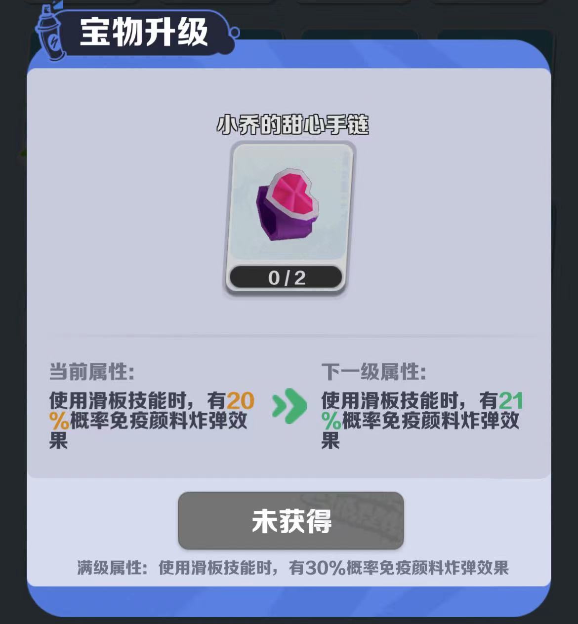 精灵琪琪圣诞帽作为道具赛模式中的特殊装备,其核心能力在于为玩家提供对恶魔道具的免疫机会。当角色装备该宝物并在使用滑板时,有20%的概率完全免疫对手释放的恶魔道具攻击。恶魔道具在游戏中以干扰性强著称,能够颠倒操作方向、限制视野,极易导致失误撞墙或速度中断,尤其在高速滑行或复杂地形中危害极大。而拥有圣诞帽后,玩家相当于多了一层隐形防护盾,能够在关键时刻避免被恶意干扰,保持节奏稳定前行。随着宝物等级的提升,这一免疫概率在满级后可提升至30%,虽看似幅度不大,但在高强度对局中,每一次免疫都可能决定胜负走向。