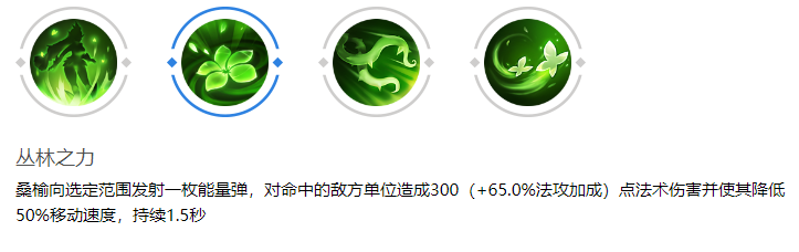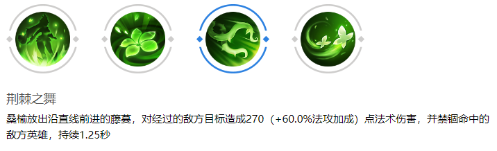 桑榆的一技能在游戏前期主要用于消耗敌方射手和辅助,补充团队输出并限制对方的走位空间。在团战中,这一技能可以在追击敌人或撤退时发挥重要作用,减速效果能够帮助队友完成击杀或为团队提供安全的撤退环境。桑榆通常将一技能与二技能结合使用,以提高二技能的命中率。二技能“荆棘之舞”向前释放藤蔓,对敌人造成伤害并进行禁锢。然而,由于藤蔓长度有限且释放时有前摇动作,因此在正常对线时,如果站位较后或追击敌人时,往往难以命中目标。作为一个软辅,桑榆在技能真空期的抗伤能力较弱,因此玩家需谨慎,避免为了追求二技能的命中而站位过于靠前。在二技能距离不足时,可以保留该技能以防御对面突进英雄的切入。一技能的减速效果将显著提高二技能的命中率。