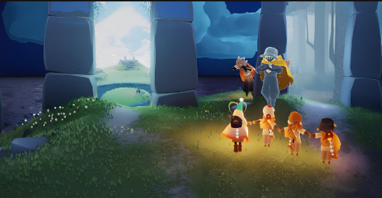 那么,如何找到正步冒险家先祖呢?其实路径十分明晰:首先,萌新们进入雨林的第三图后,请一直勇往直前。当你看见一个小亭子时,请停下脚步,朝左侧望去。在亭子左边,你会惊喜地发现一个隐藏的洞穴。来到洞穴旁,飞至洞穴上方的山坡上。此时,一个先祖的虚影将映入眼帘——没错,那就是正步冒险家先祖!他正静静地等待着与你相遇。这一路寻找下来,是不是觉得其实并不难呢?走近正步冒险家先祖,点燃他身边的火苗,与其互动,便能成功解锁与他相关的精彩内容。