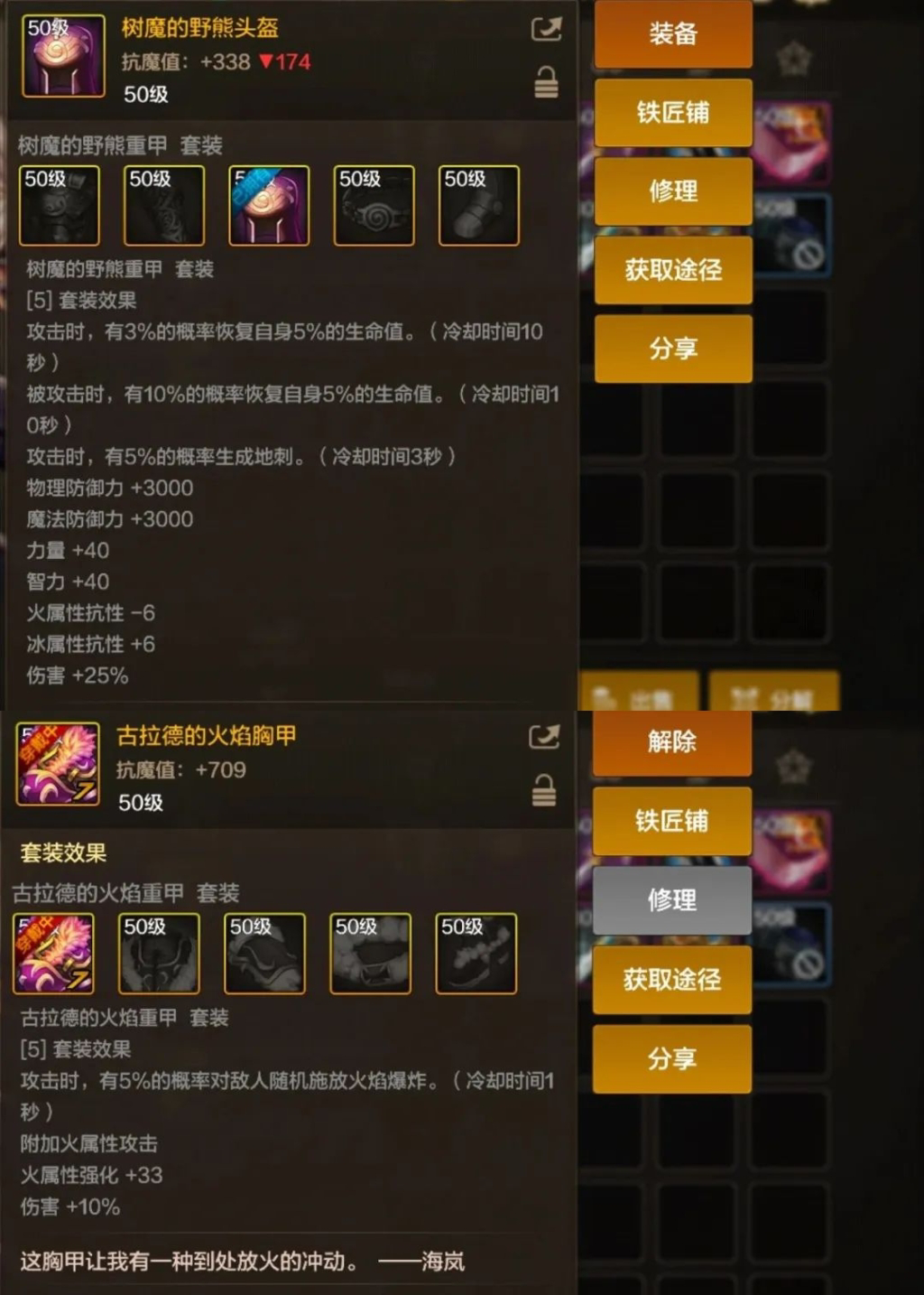 确定要玩沧海手炮的老哥,有条件的建议用火甲套崽装备疯狂伊凡的召唤后如果火抗大于20点就可以提升5点火强,配合本身带有的17点火强能够增加5%伤害!这样配合着玩沧海手炮其实还是不错的,平民玩家还是首推古拉德套装,其次推荐树魔套,两个套装在没有+20的前提下,都是最有性价比的几个套装。