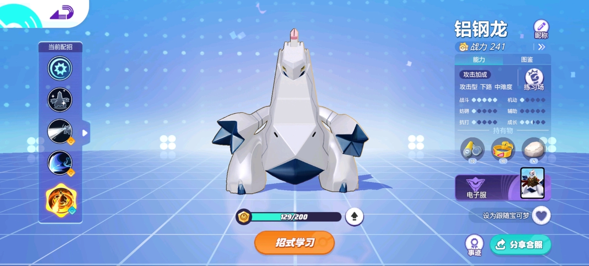铝钢龙,射手宝可梦,技能有些类似于黄忠,是在游戏中仅次于狙射树枭的射手宝可梦,其强度非常可观