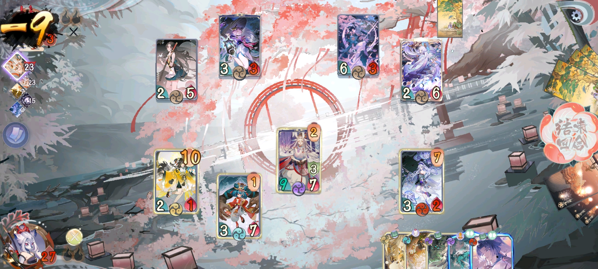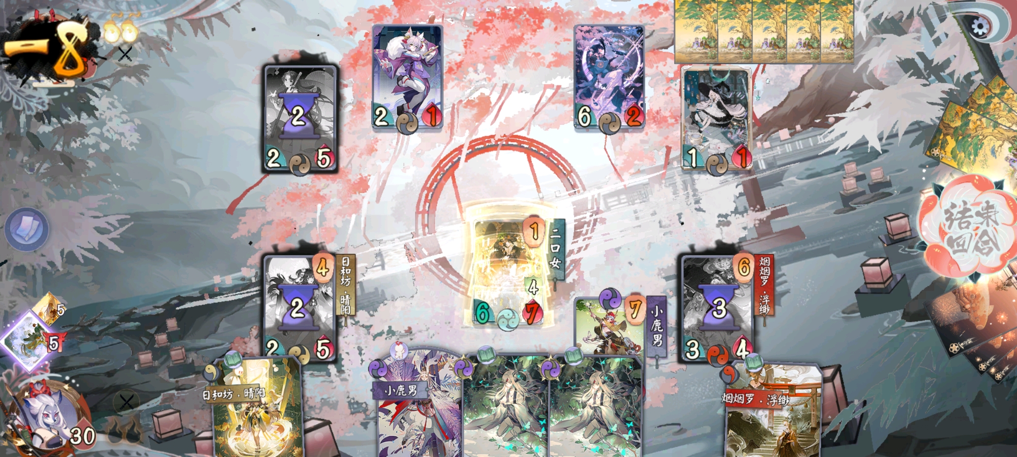 这卡组的优点是SP日和坊能够消耗自己充能值给其他式神爆能牌用这导致我们基本都能吃到爆能牌和赐能牌的最大收益所以...请看VCR