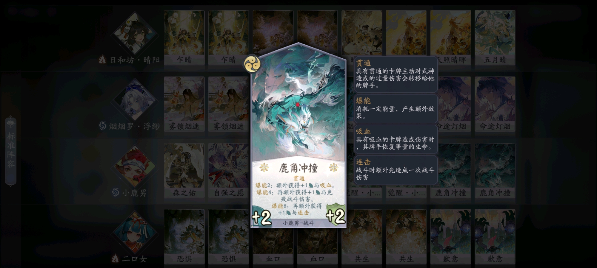 第二波攻势就是小鹿男战斗牌斩杀了,靠着小鹿男自身复活和SP日和坊充能支援基本能做到