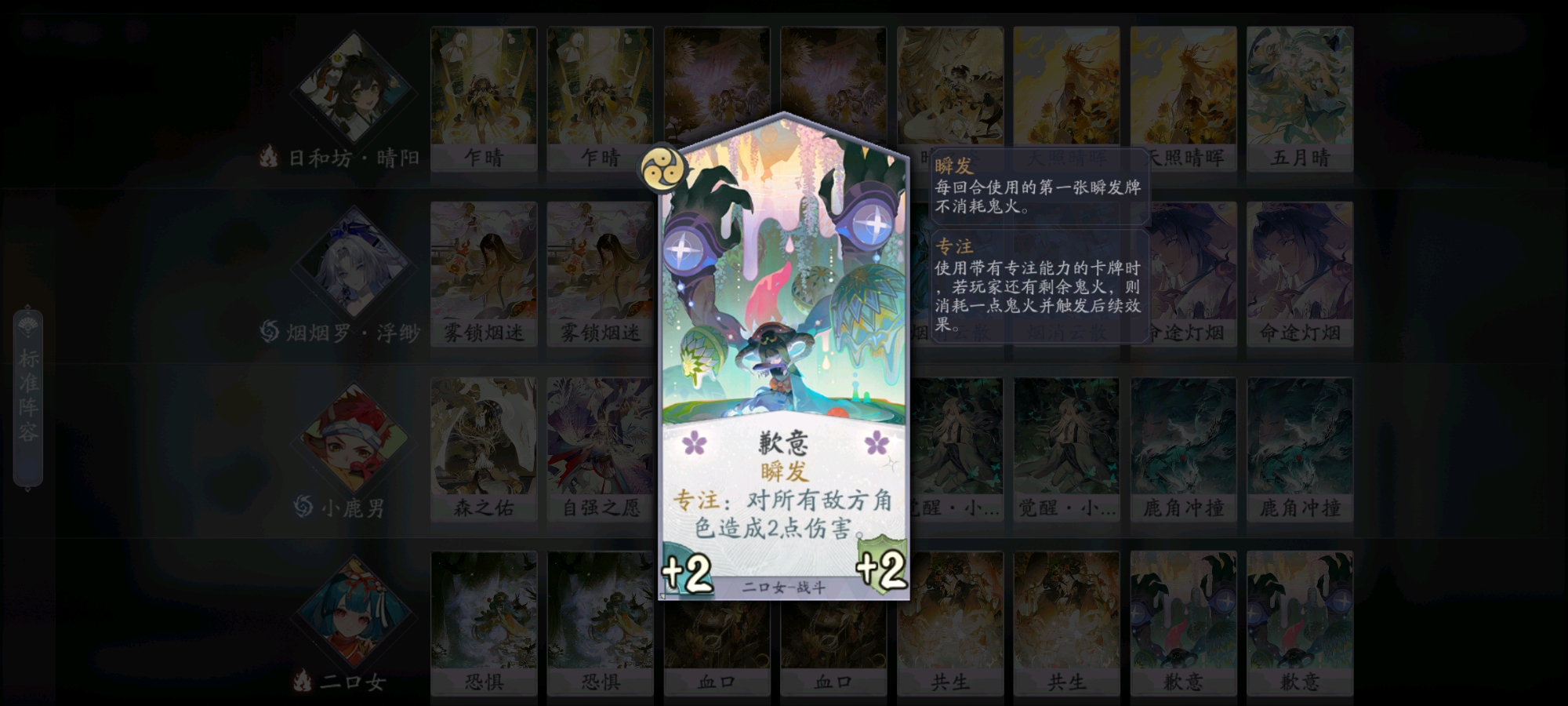 这里我们注意二口女的战斗牌是具备瞬发效果的