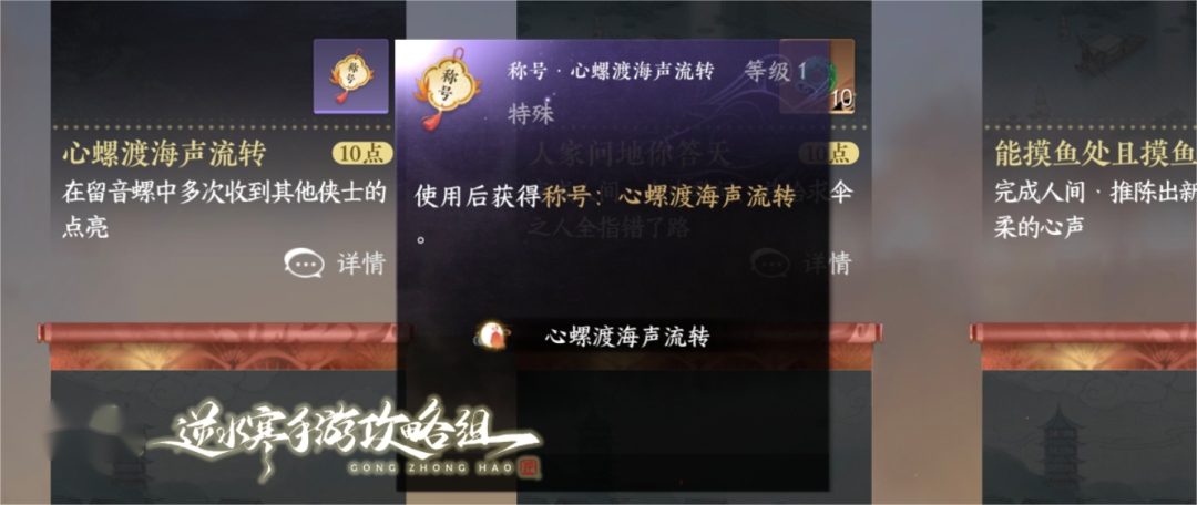 发布任意10次留言,达到本日上限解锁成就·缘聚心音,领取道具留音小螺。下次发布留言可以直接在背包点击使用。