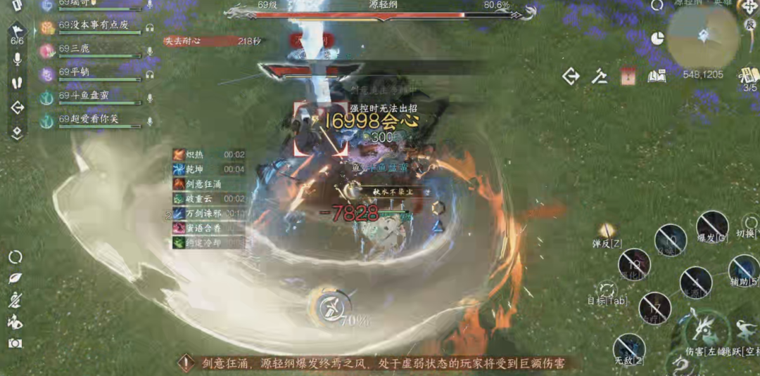 终焉之风: 源轻纲剑意值满溢时,把所有人拉至身边,爆发全部剑意释放终焉之风,30剑意值以下玩家会被秒杀,要少吃技能时刻保持剑意值高昂。
