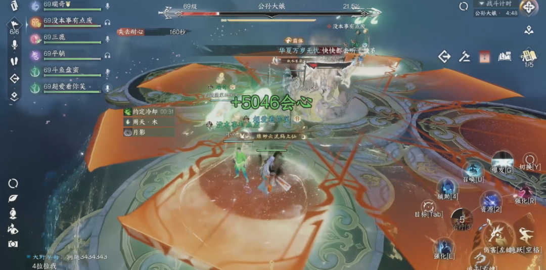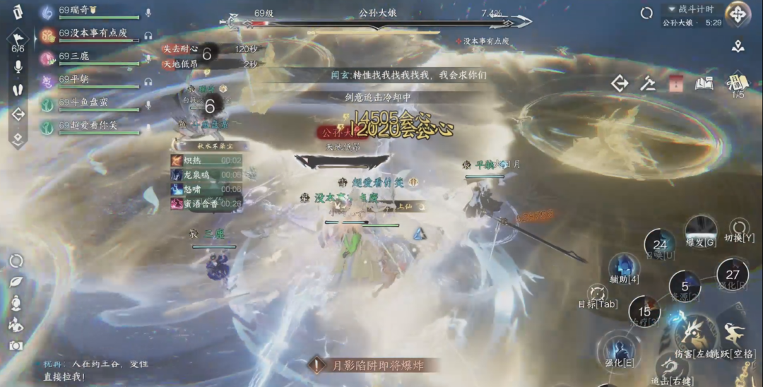 动四方:公孙大娘35%血量之后,在四个方向召唤幻象,公孙大娘会随机连线其中一个幻象,共同使用一次技能,随后其余幻象再次使用该技能。