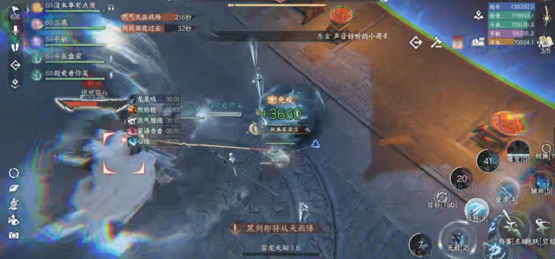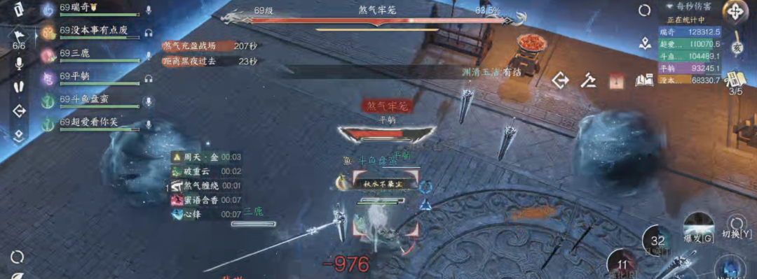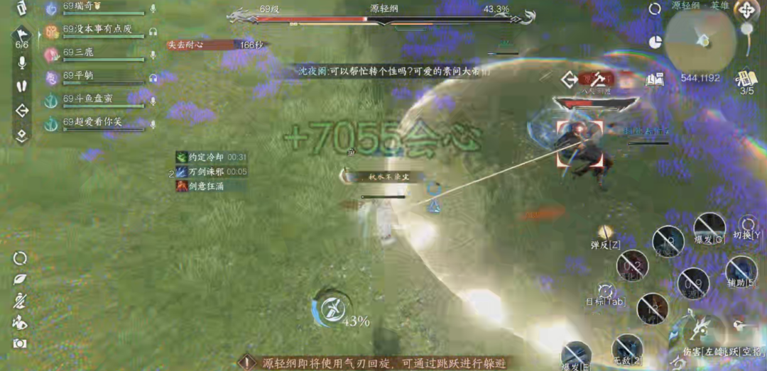 2)流音壁/气刃回旋:流音壁时躲在BOSS背后输出,显示释放气刃回旋立马三段跳/开笛子减伤回血,伤害很高。