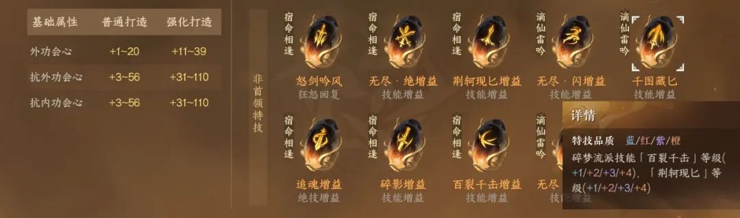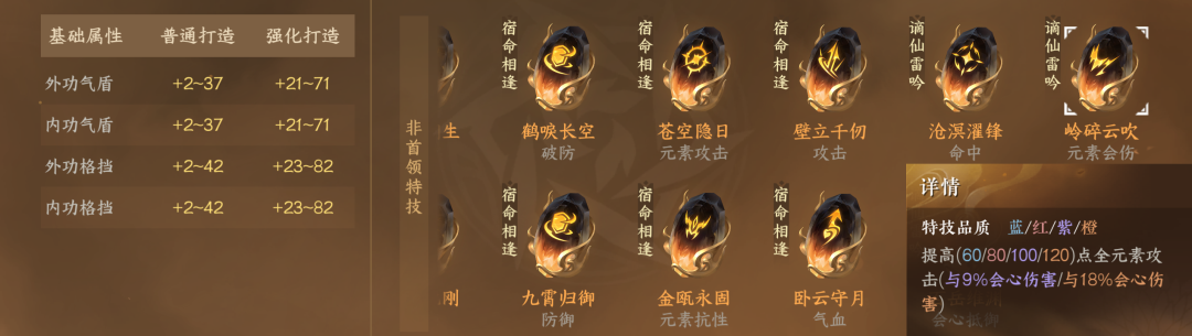 5)鞋子特技:新增特技岭碎云吹,金打造增加120点元素攻击和18%会伤,和震海潮生一样也是毕业特技。