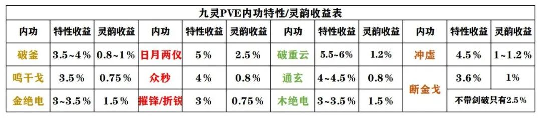 1)为了方便各职业查询,每个职业单独做个内功收益表格,技强内功收益具体看各职业内功特性收益表。