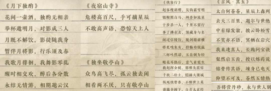 本周新增团本彩蛋:在普通永夜星都·少年柳星闻后面的凉亭中(129 192)可以看到新增的太白诗稿,记载了普通难度诗词填空里出现过的诗词全篇。猜测诗词的下半部分和新增的《独坐敬亭山》会出现英雄难度的诗词填空中。