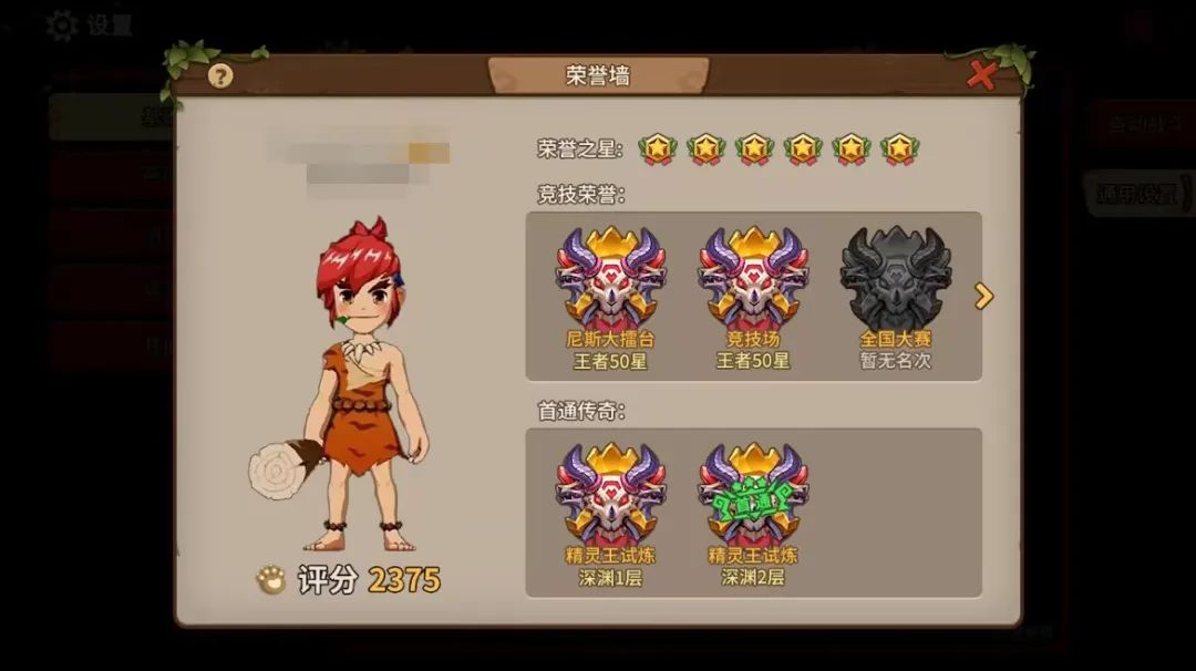 2、在角色信息界面,增加荣誉墙和荣誉之星,显示首通成就