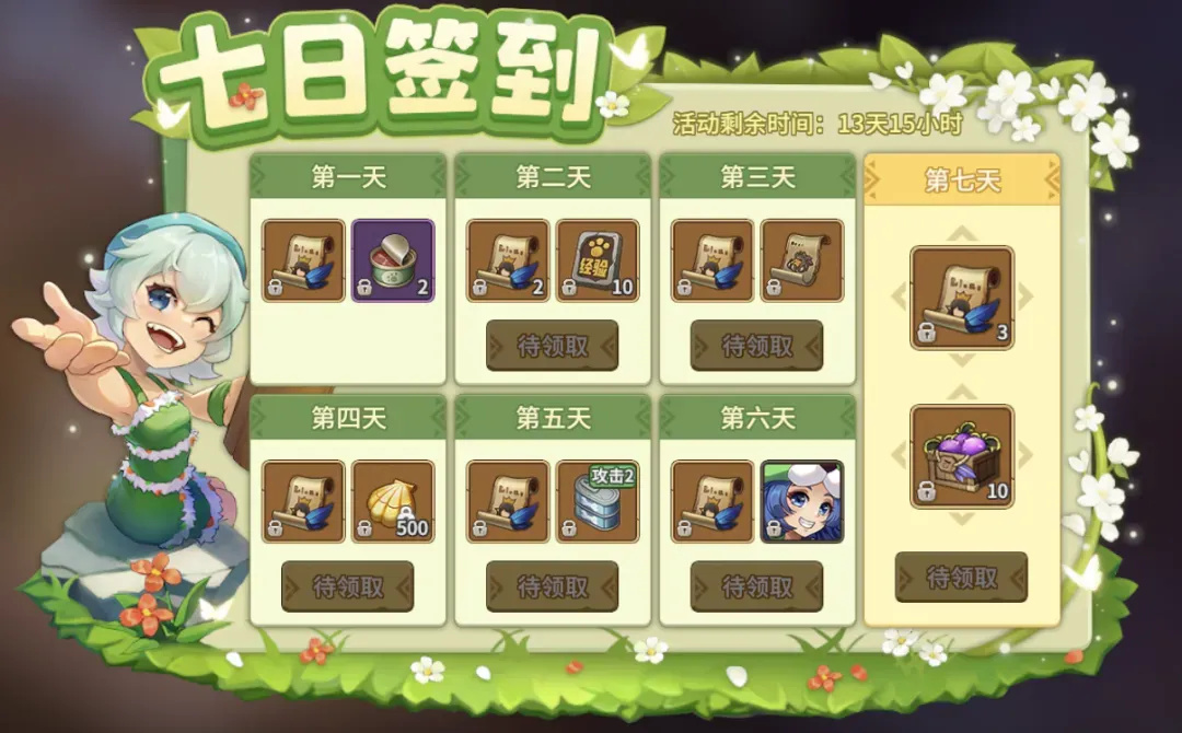 玩家在新服注册后可参与7日签到活动,每日签到就能领取特定福利。